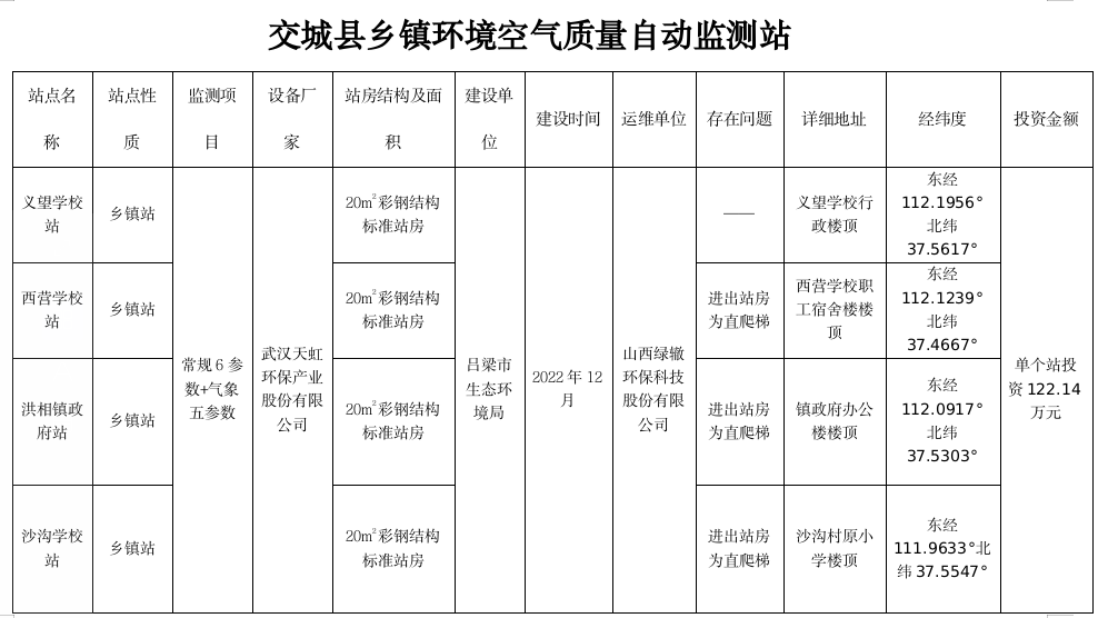 交城县乡镇环境空气质量自动监测站