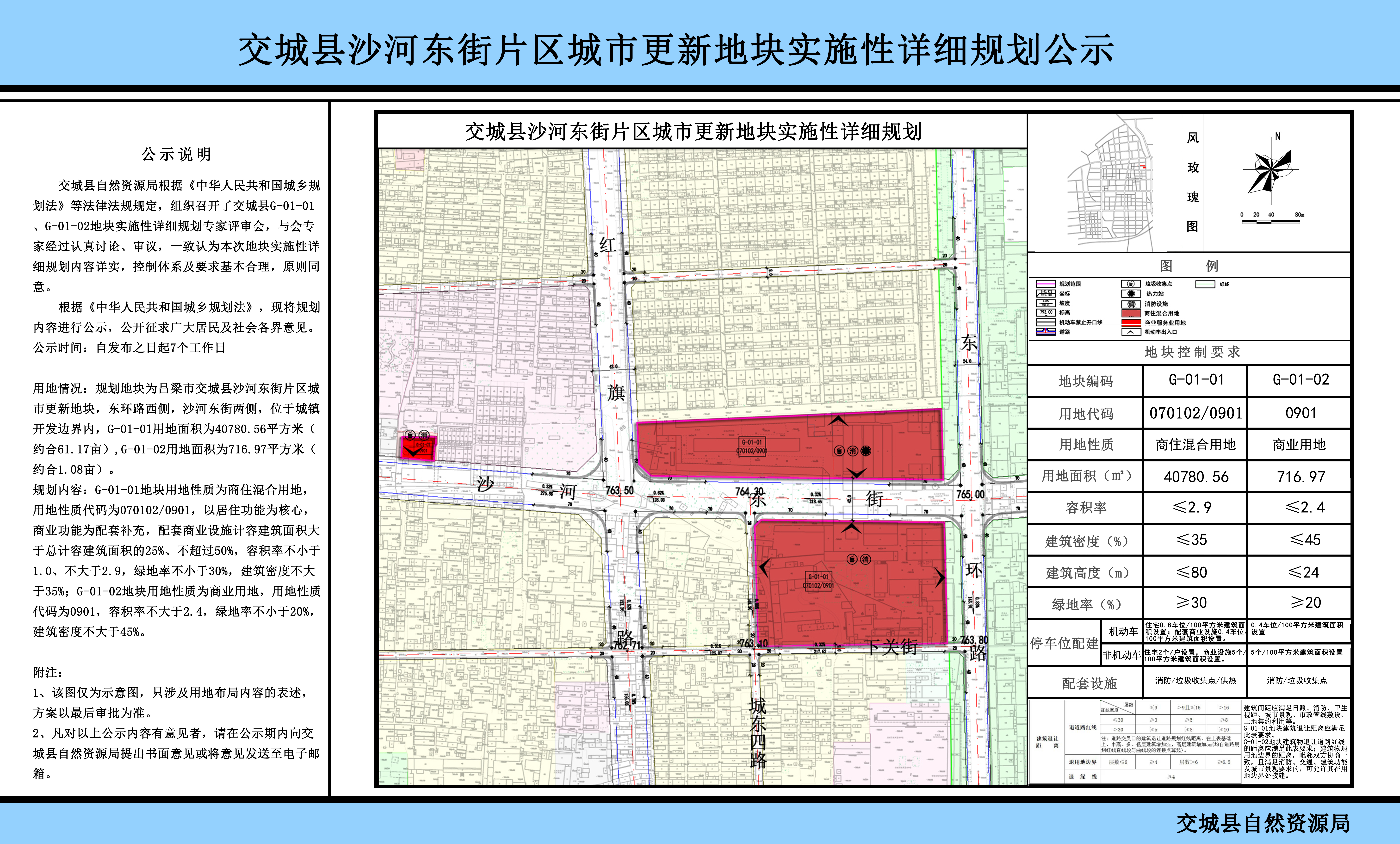 根据《中华人民共和国城乡规划法》等法律法规规定,我局组织专家对规划资质单位编制的《交城县沙河东街片区城市更新地块实施性详细规划》进行了技术评审,并审查通过。现将规划内容进行公示,公开征求广大居民及社会各界意见。