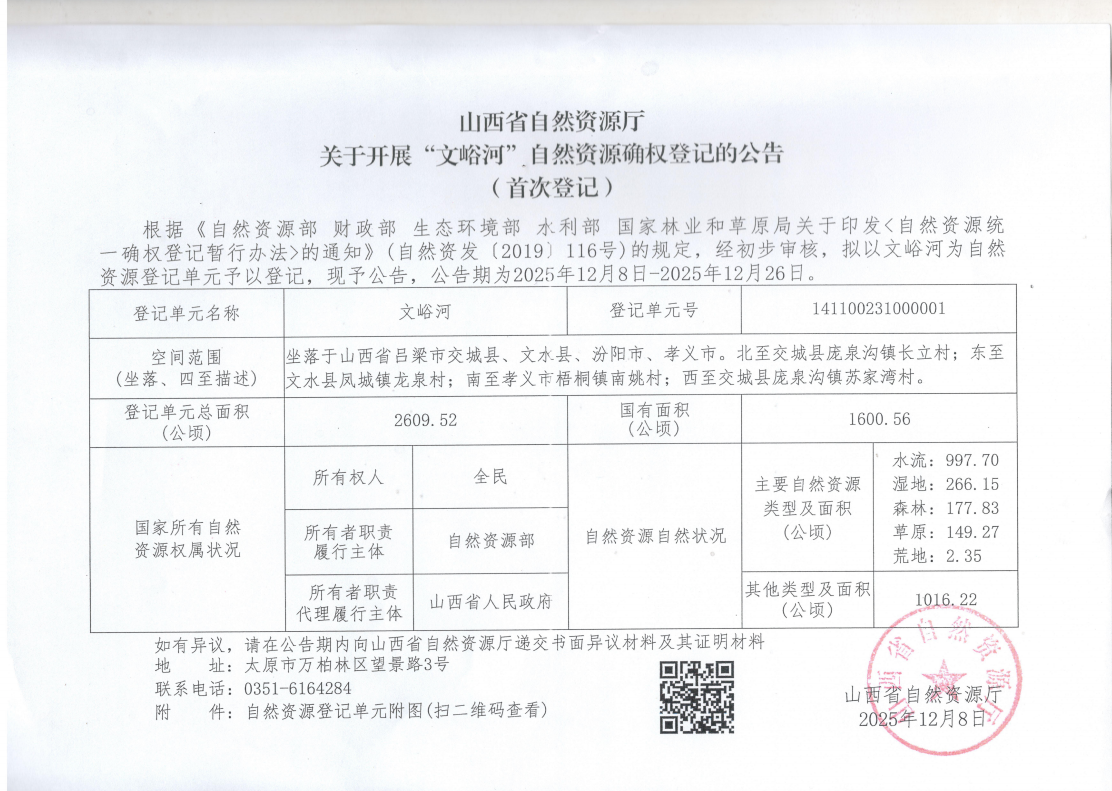 山西省自然资源厅关于开展“文峪河”自然资源确权登记的公告
