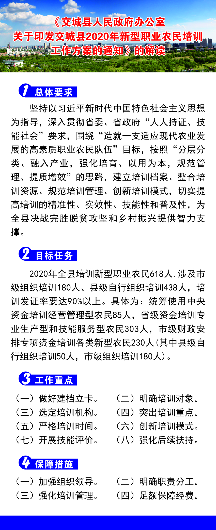 【图解】县农业局《交城县人民政府办公室关于印发交城县2020年新型职业农民培训工作方案的通知》的解读