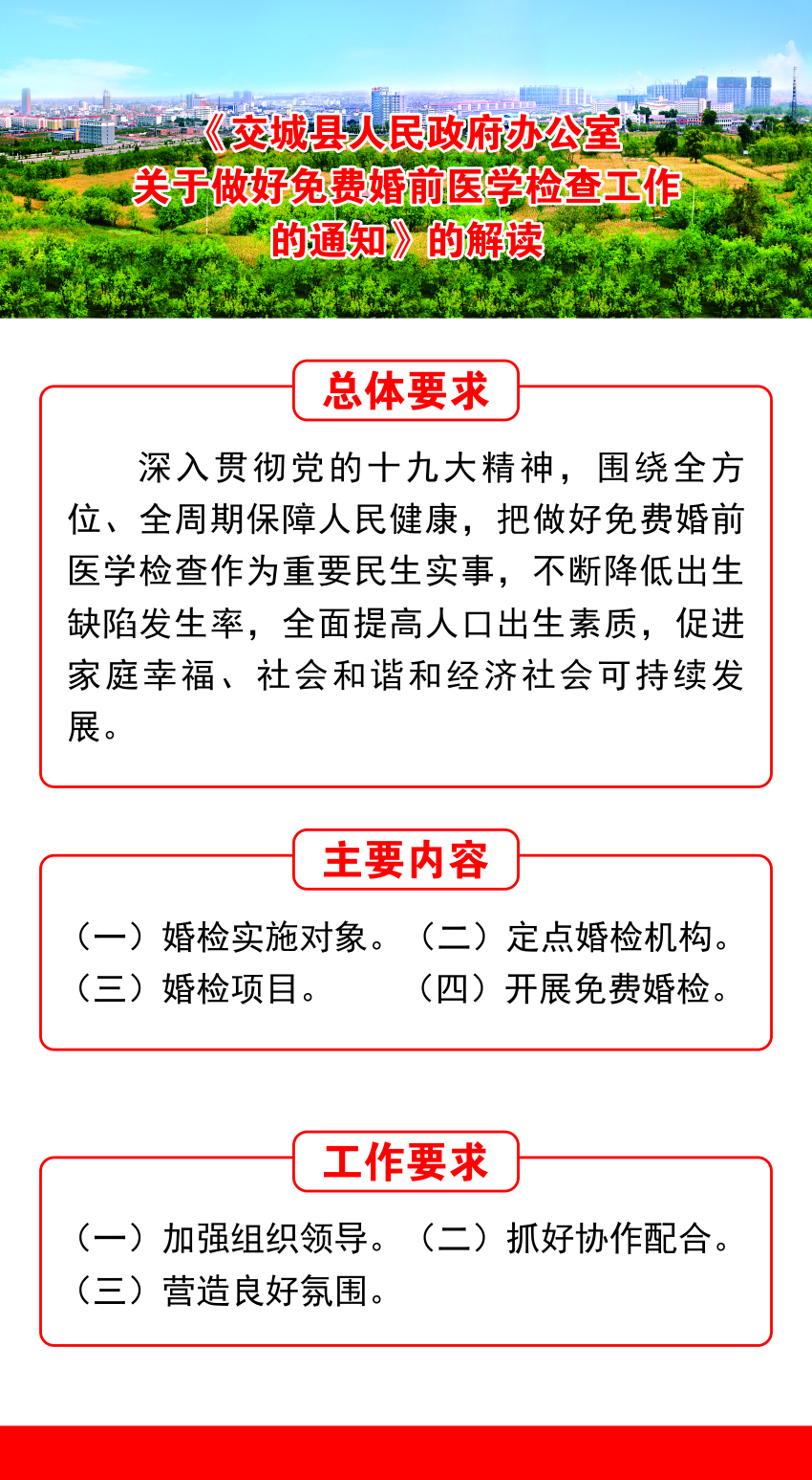 【图解】县卫健局关于《交城县人民政府办公室关于做好免费婚前医学检查工作的通知》的解读