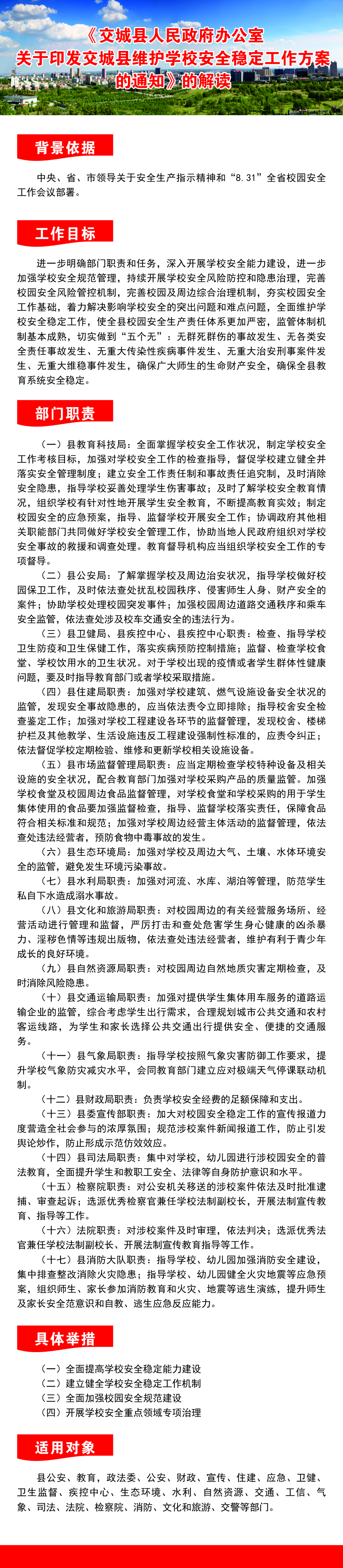 【图解】县教育科技局关于《交城县人民政府办公室关于印发交城县维护学校安全稳定工作方案的通知》的解读