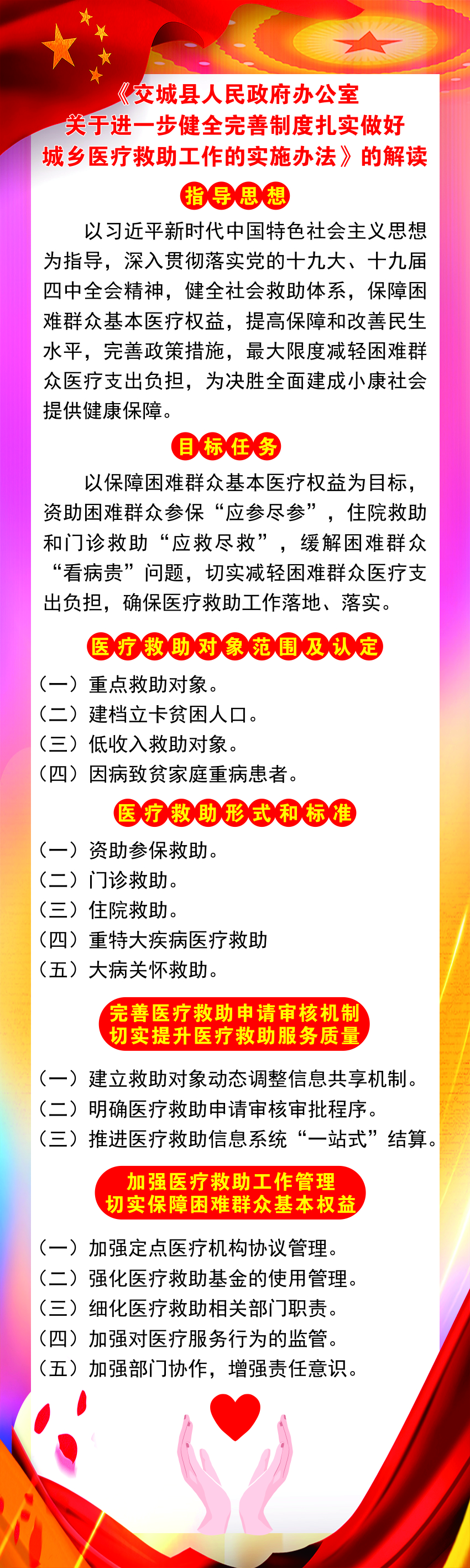 【图解】县卫健局关于《交城县人民政府办公室关于进一步健全完善制度扎实做好城乡医疗救助工作的实施办法》的解读