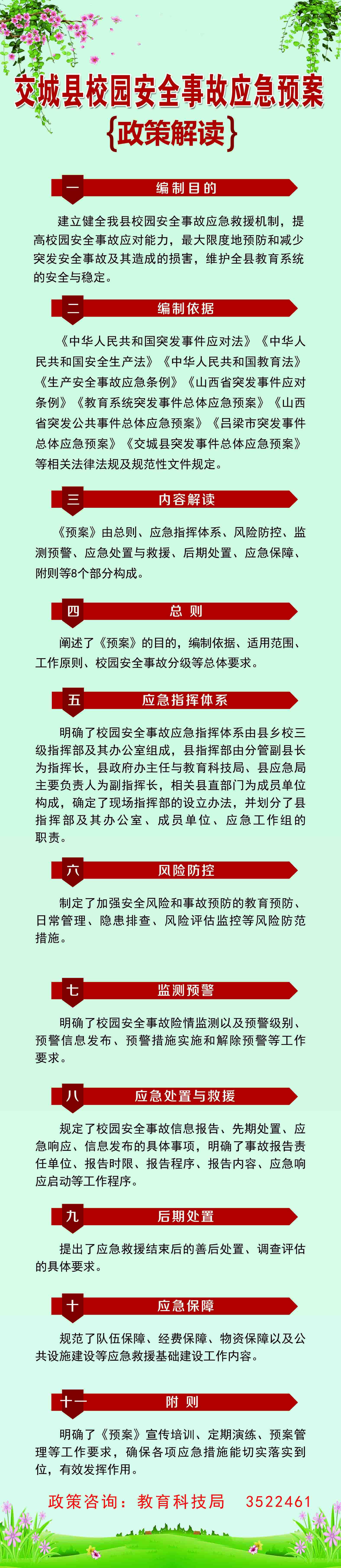 相关文件:县教育局《关于印发交城县校园安全事故应急预案的通知》的解读