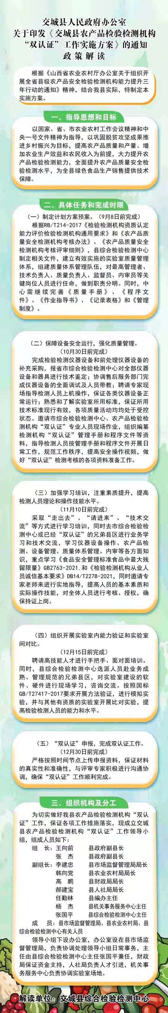 相关文件:关于印发交城县农产品检验检测机构“双认证”工作实施方案的通知