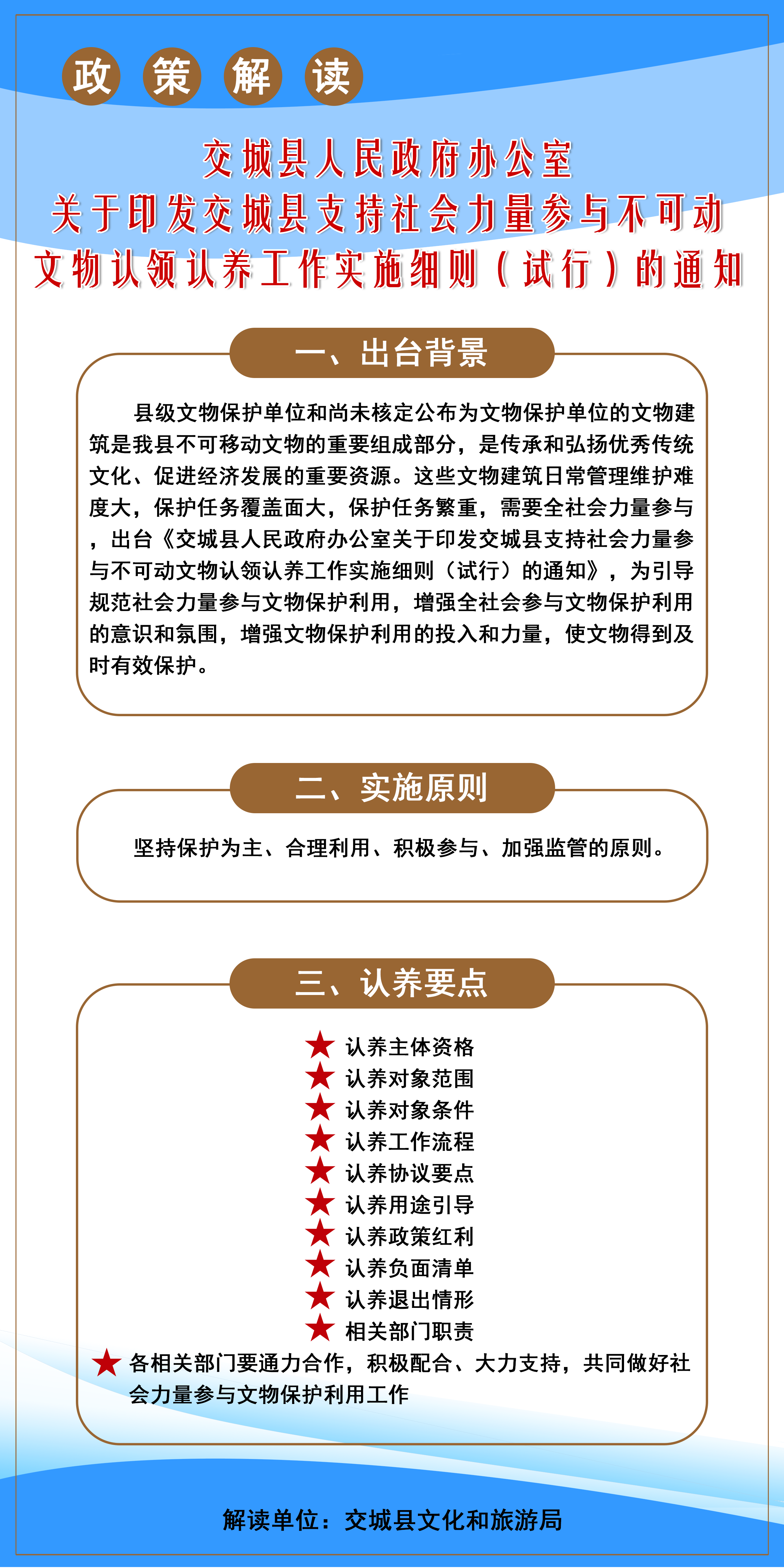 相关文件:关于印发交城县支持社会力量参与不可移动文物认领认养工作实施细则(试行)的通知
