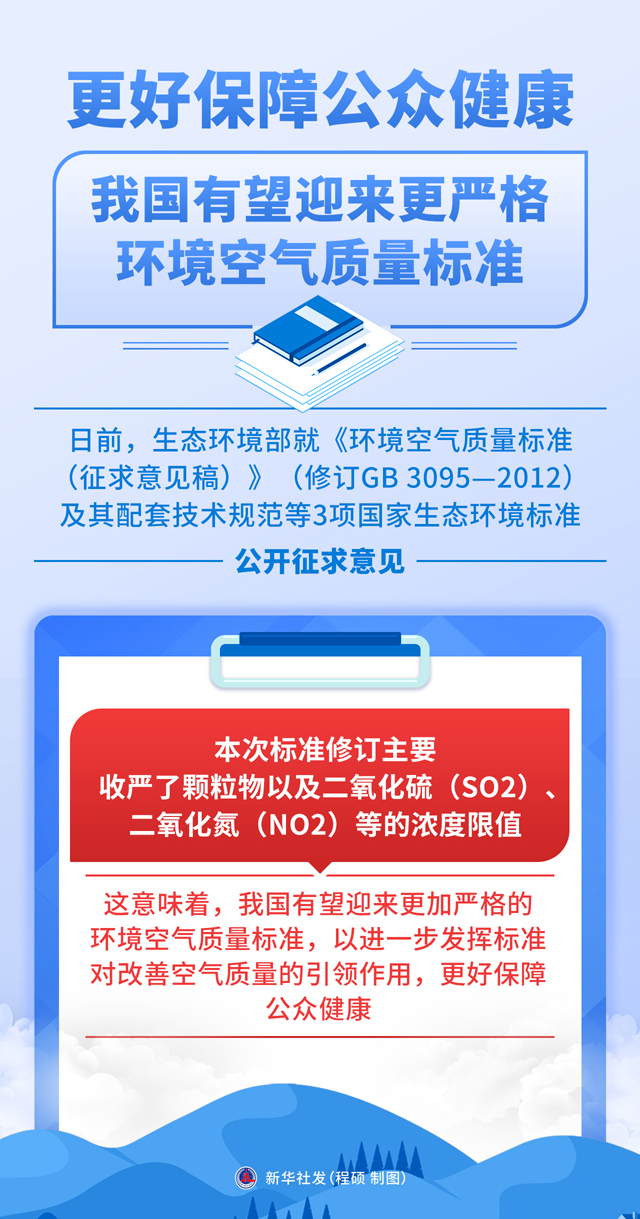 日前,生态环境部就《环境空气质量标准(征求意见稿)》(修订GB 3095—2012)及其配套技术规范等3项国家生态环境标准公开征求意见。本次标准修订主要收严了颗粒物以及二氧化硫(SO2)、二氧化氮(NO2)等的浓度限值。这意味着,我国有望迎来更加严格的环境空气质量标准,以进一步发挥标准对改善空气质量的引领作用,更好保障公众健康。