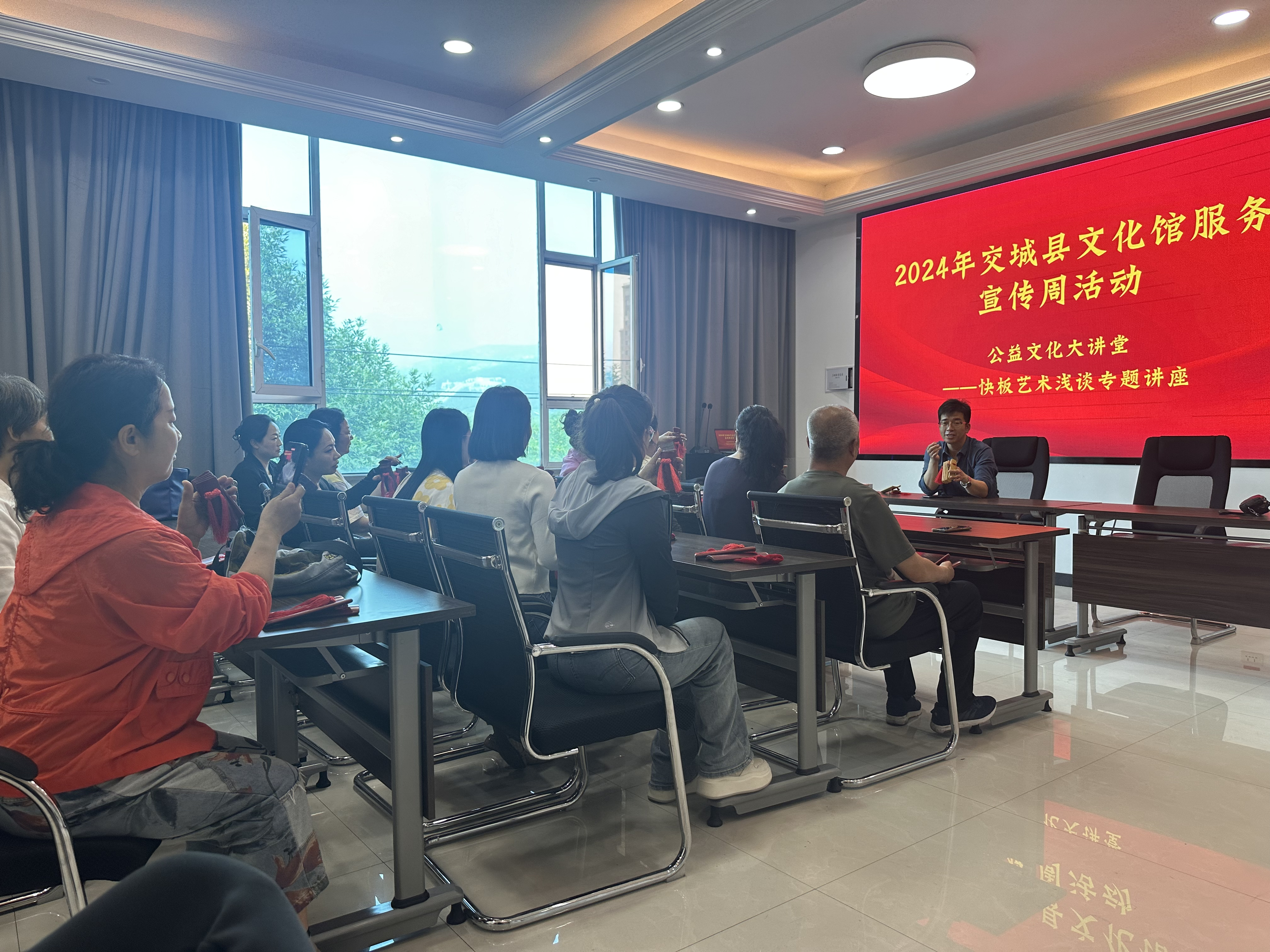 今年的文化馆服务宣传周从5月20日开始至5月26日结束,活动主题是“文化馆:人民的终身美育学校”。活动期间,交城县文化馆将围绕活动主题,组织开展“我的家乡”少儿书画展,锣鼓、戏剧、唢呐、葫芦丝、古筝公益艺术培训,快板艺术浅谈专题讲座、“漆”彩流光一在传承与创新中绽放光茫的漆画艺术讲座等,让群众在文艺活动中充分享受优质普惠的公共文化服务。