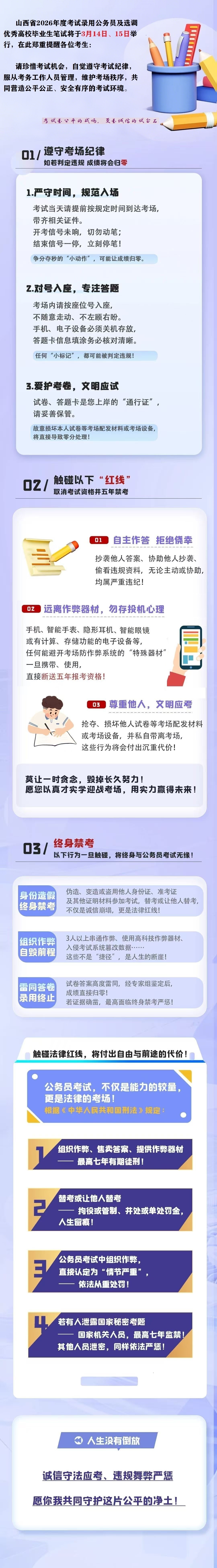 山西省2026年度考试录用公务员及选调优秀高校毕业生到基层工作笔试纪律提示