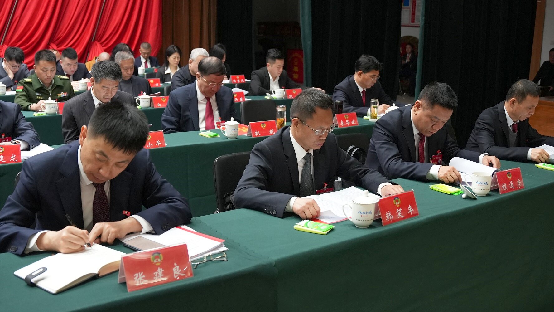 在主席台就座的还有其他县级领导,部分驻交单位负责人,近三年退下来的正县级领导,县政协历届离任主席,住我县的四届市政协委员以及政协常委会其他组成人员。
