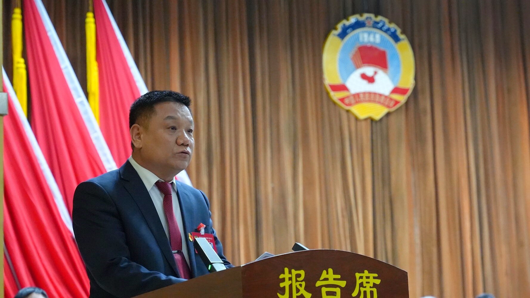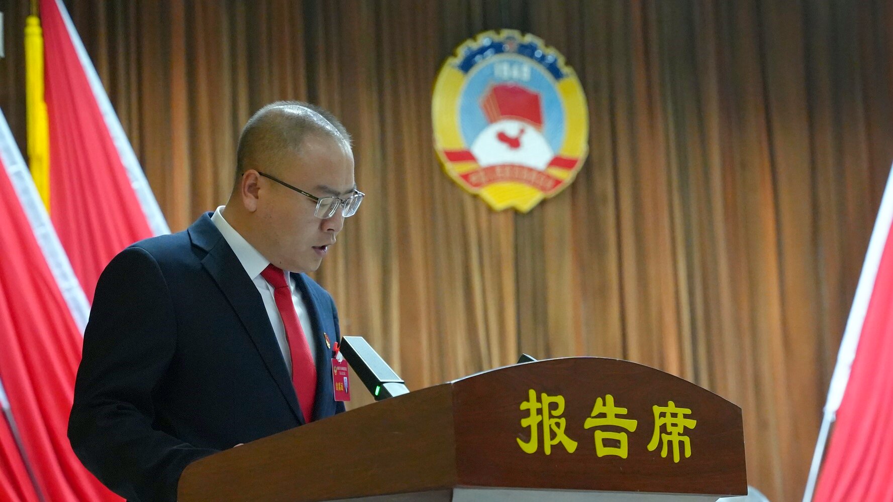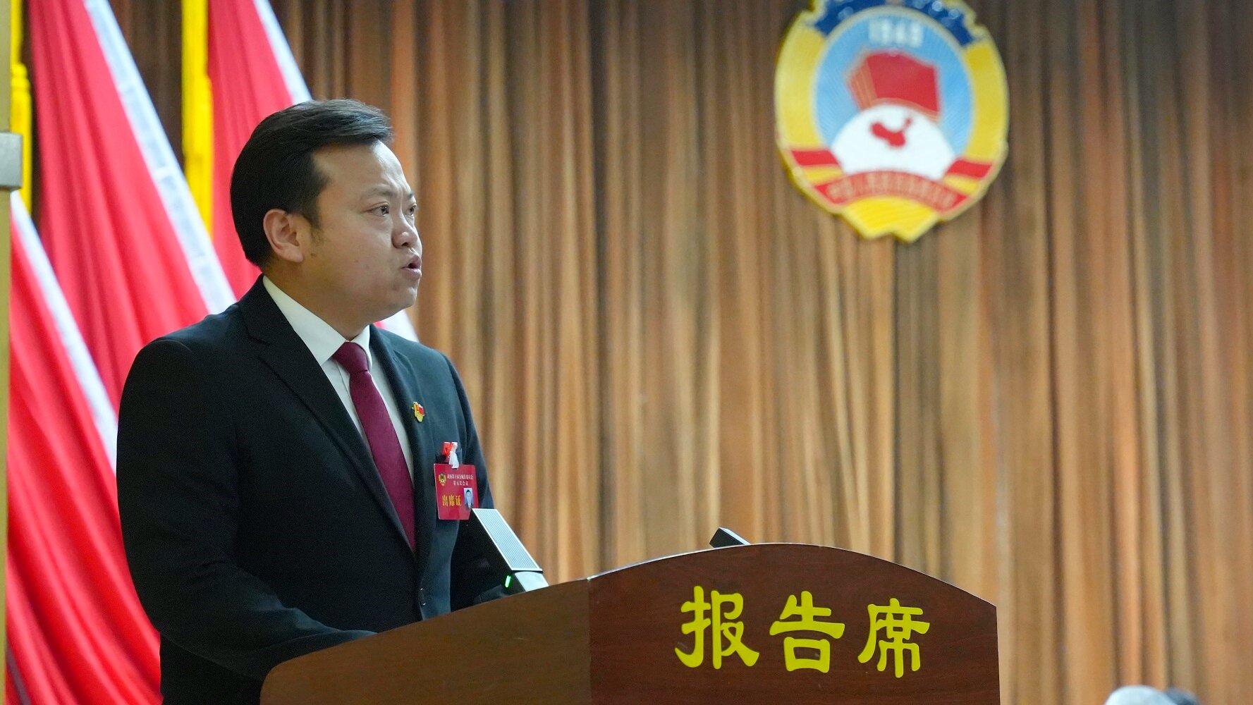 权扣维代表政协第十届交城县委员会常务委员会向大会作工作报告。