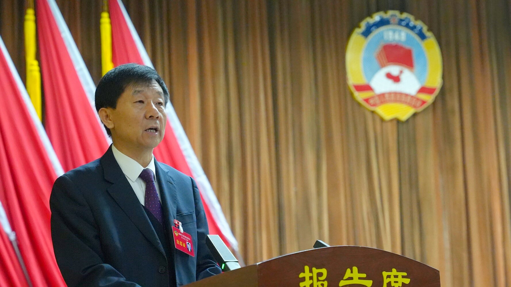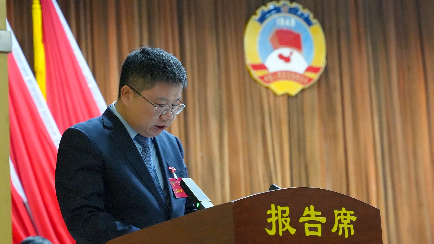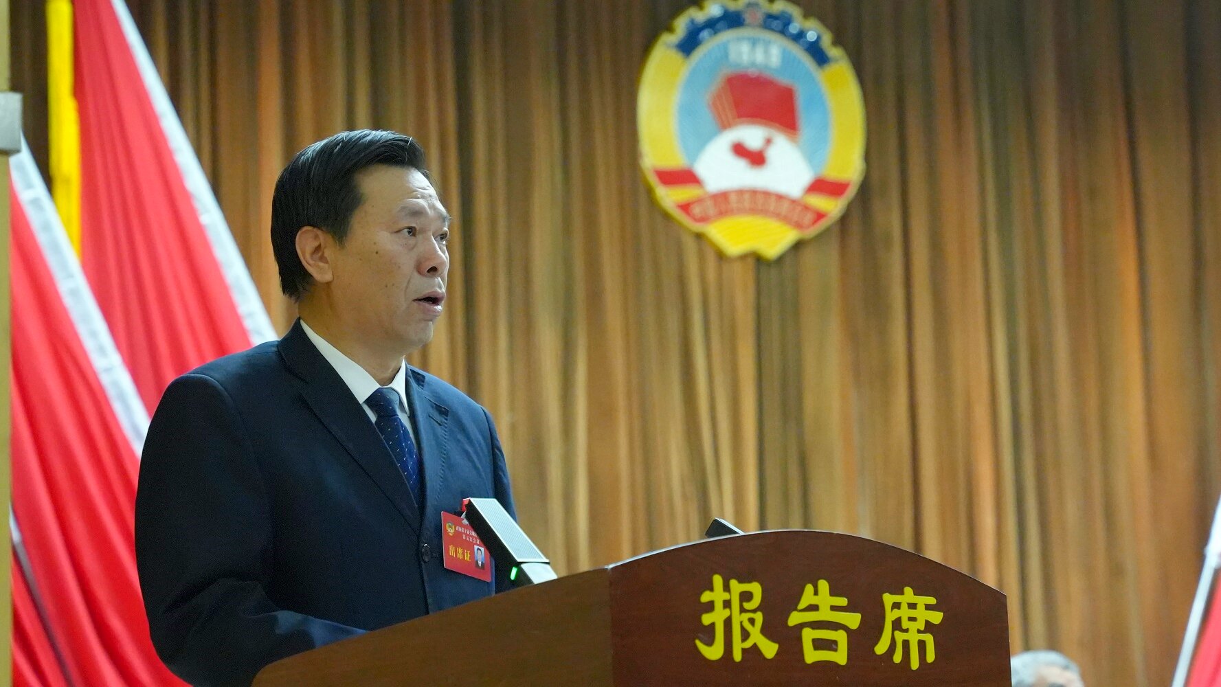 权扣维代表政协第十届交城县委员会常务委员会向大会作工作报告。