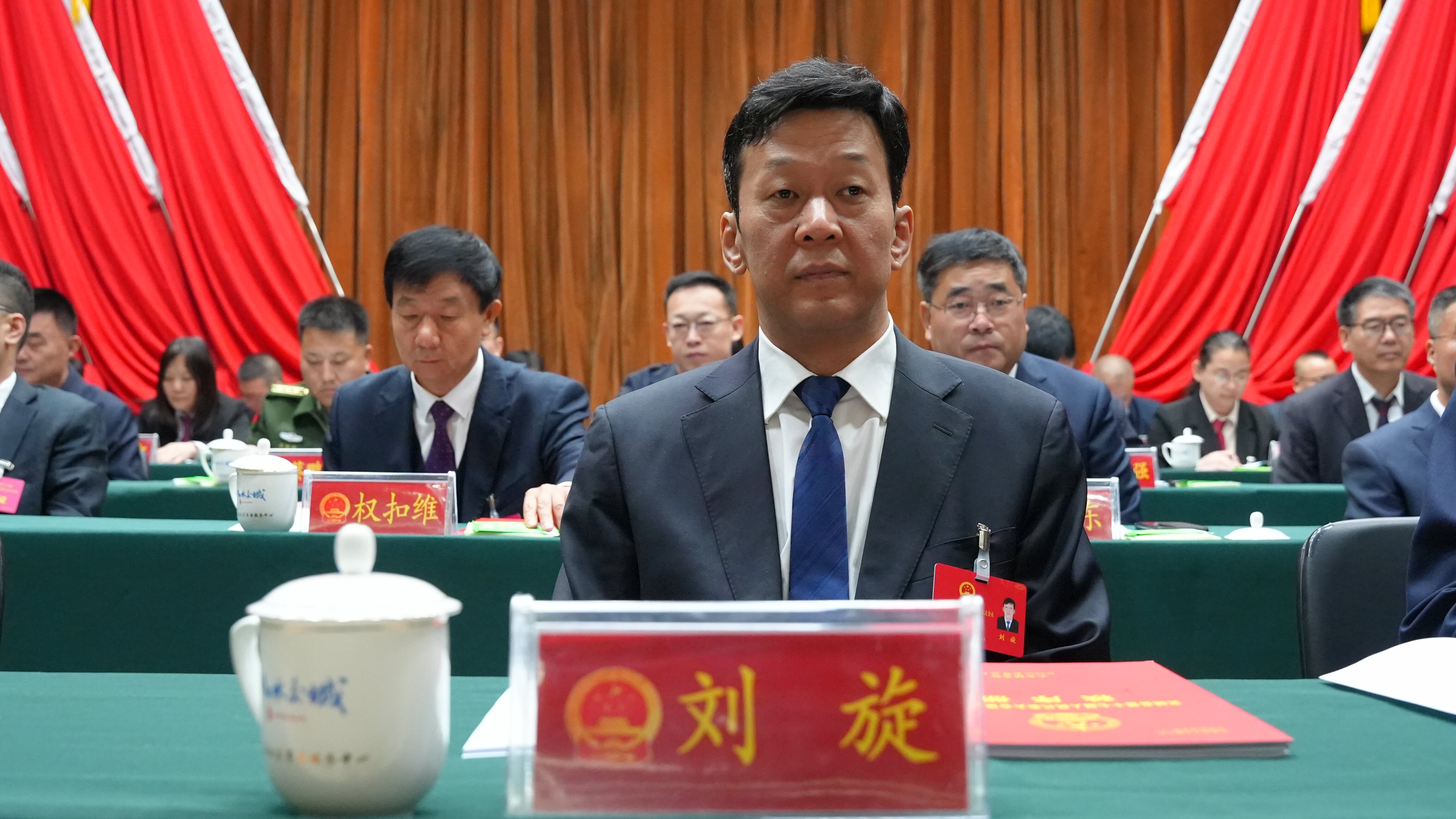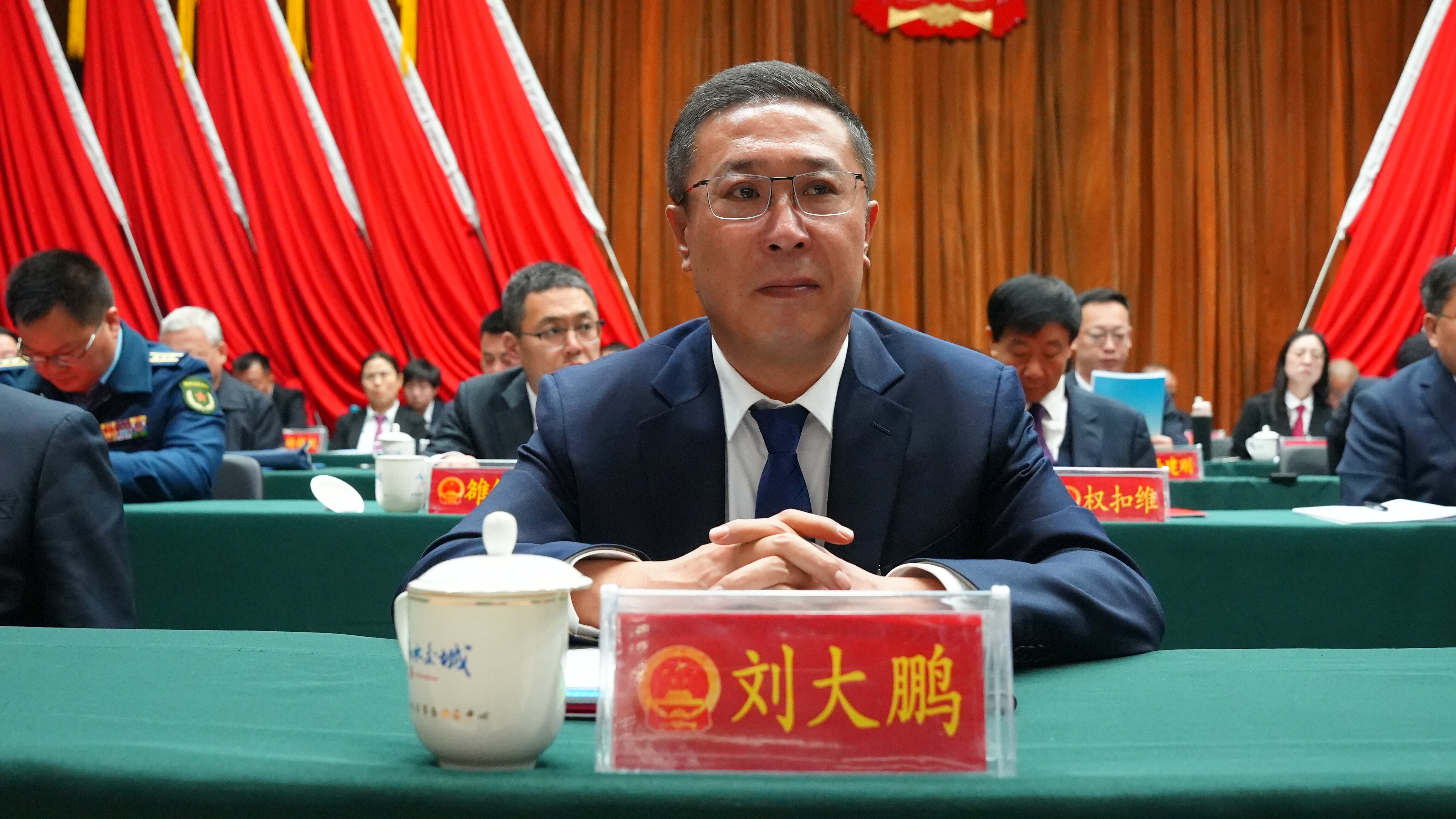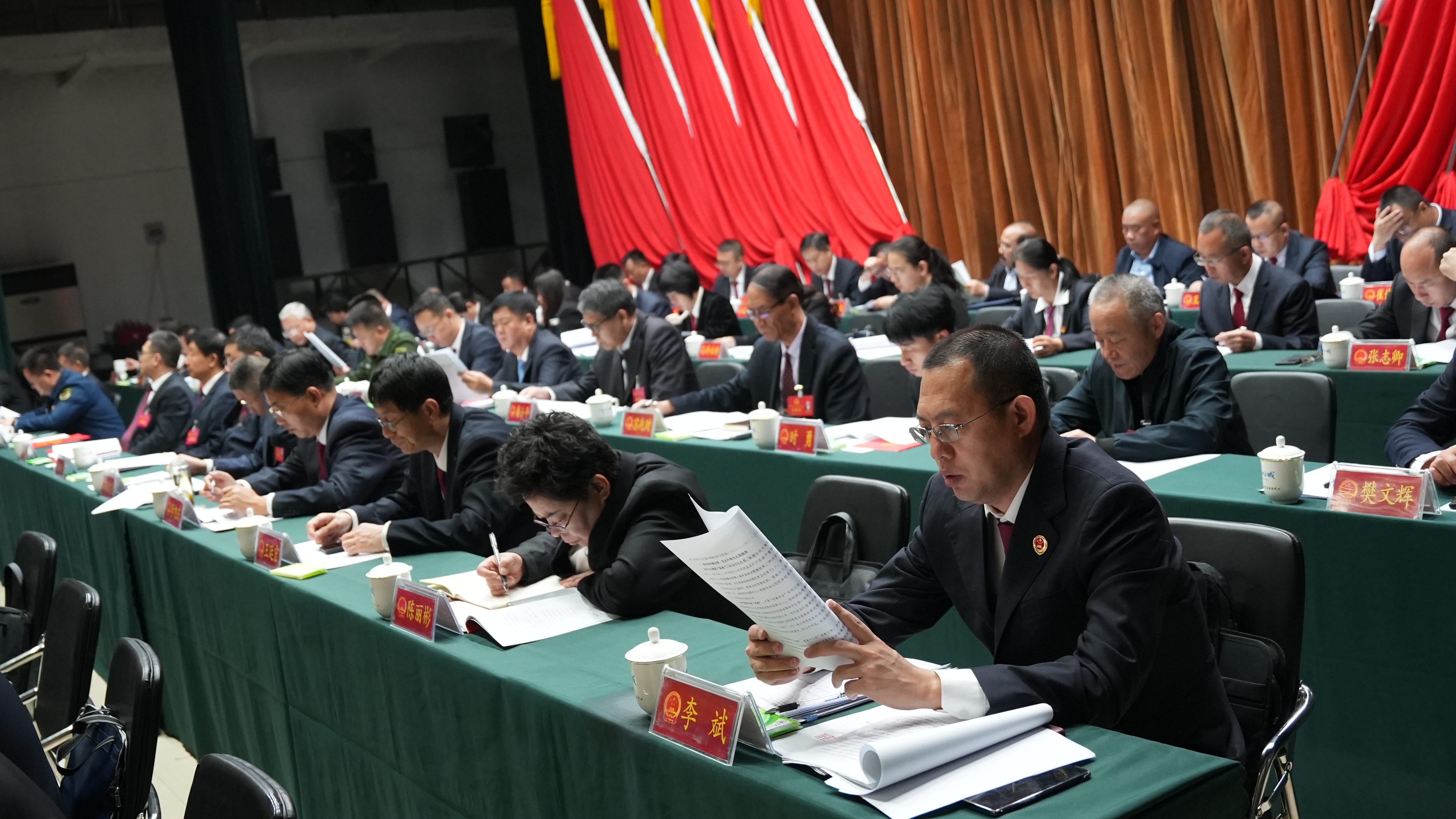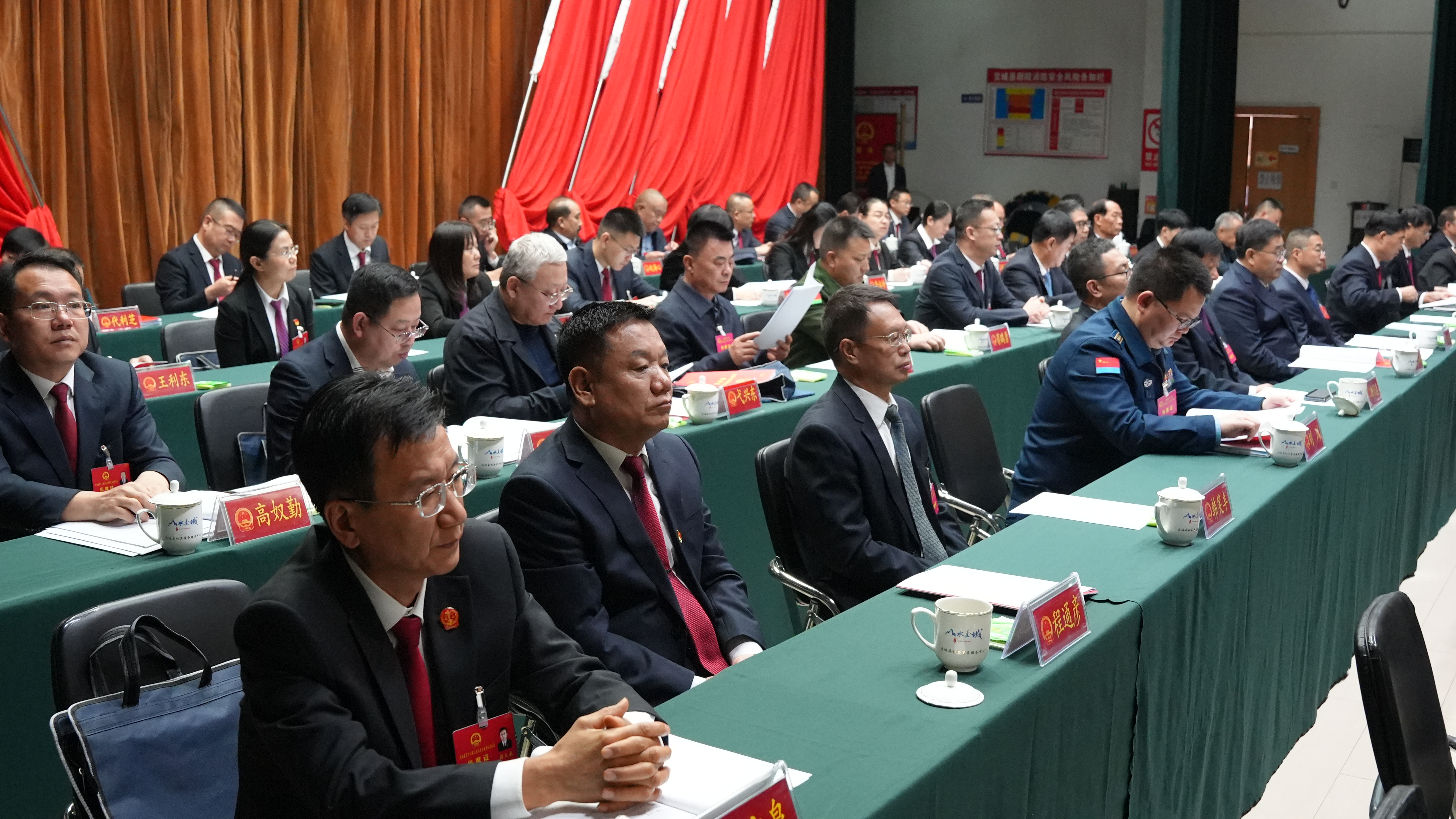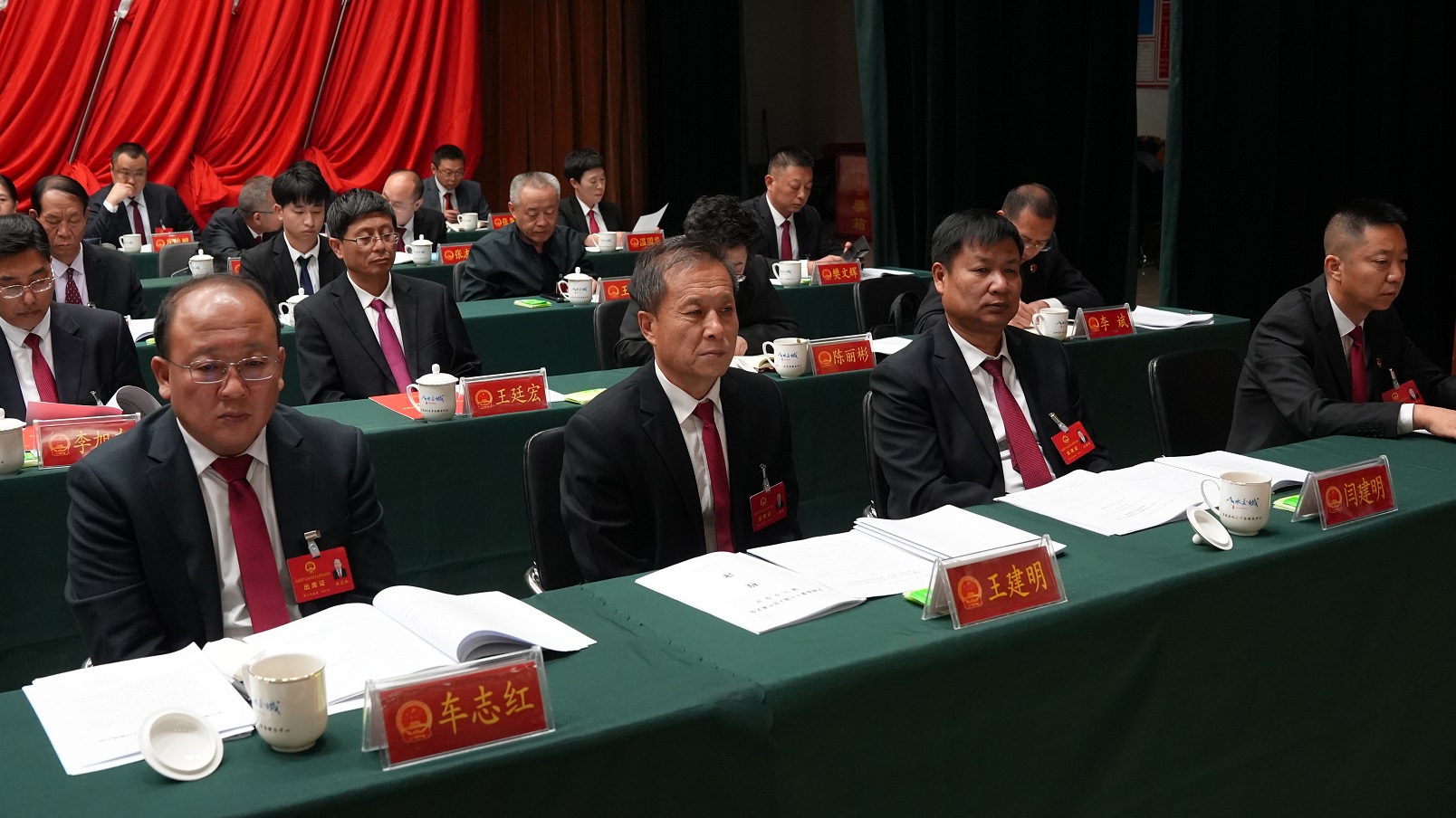 在主席台就座的还有不是代表的其他县级领导干部,近三年退下来的县级实职领导和主席团其他成员。