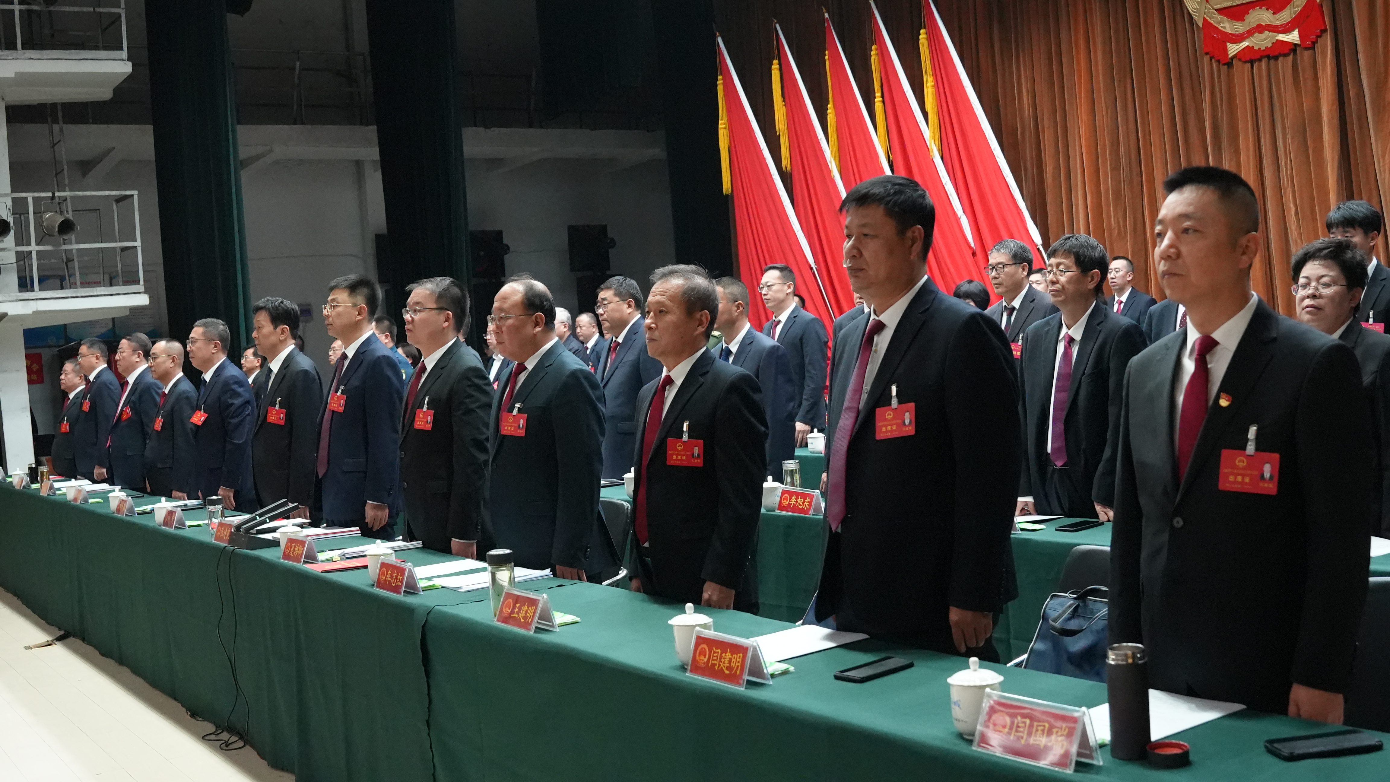 本次会议的执行主席刘旋、张建良、刘大鹏、夏韩卿、薛海斌、车志红、权斌、王建明、李华斌、闫建明、乔乃文、闫国瑞在主席台前排就座。
